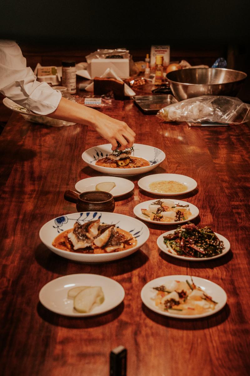 Sole Ballotine, Hazelnut Ragù, Burnt Leek, Sage, Squid Ink Tuile